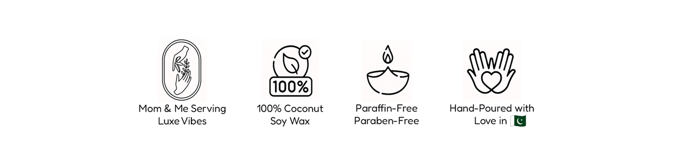 Crafted with 100% coconut soy wax, our candles are paraffin-free, paraben-free, and hand-poured in Pakistan with love. Every product reflects our luxe mom & me touch—pure, conscious, and made to elevate your space.