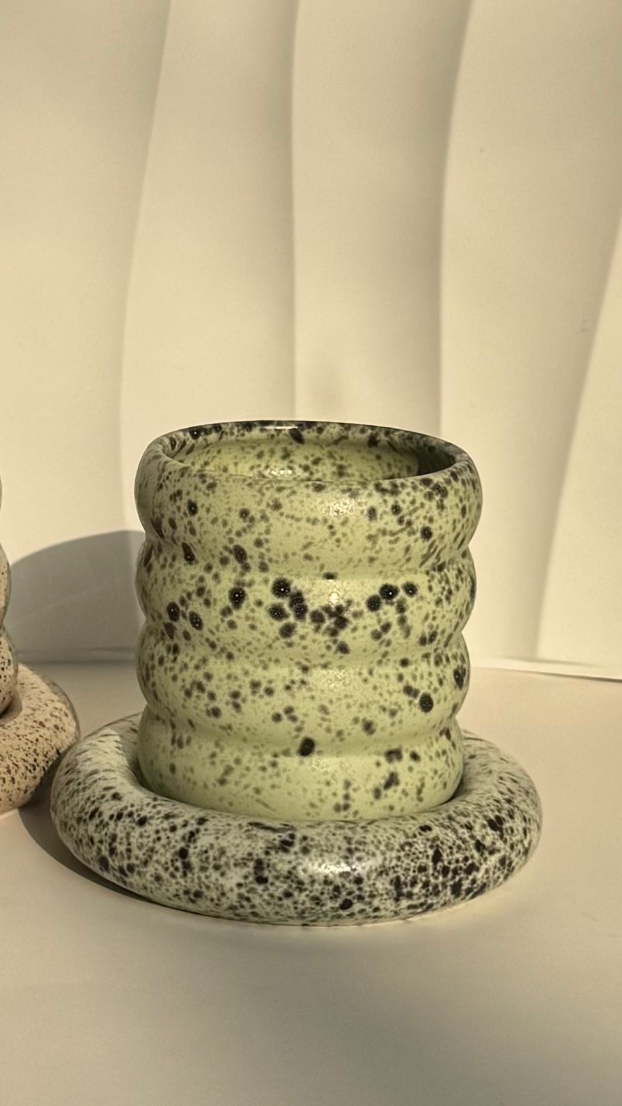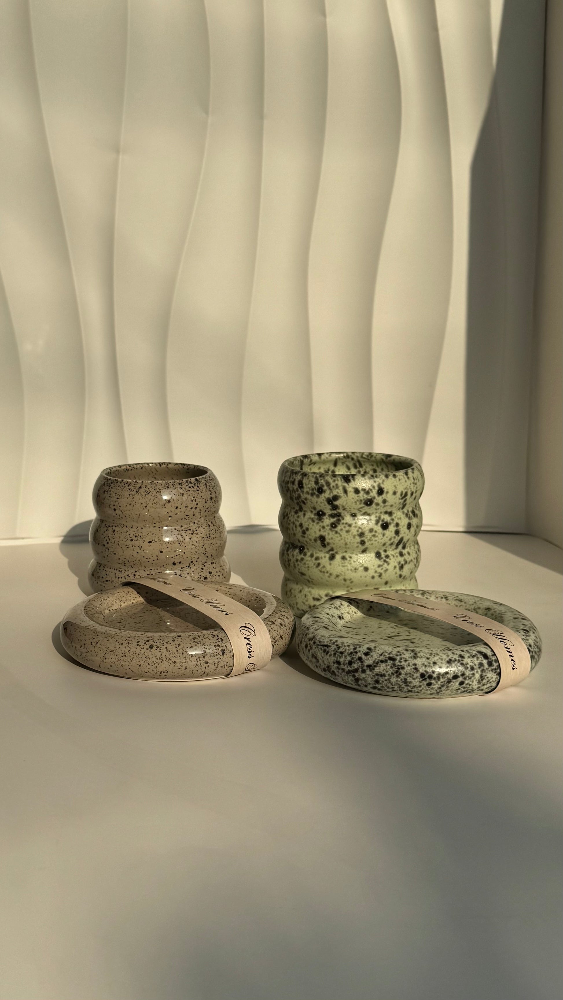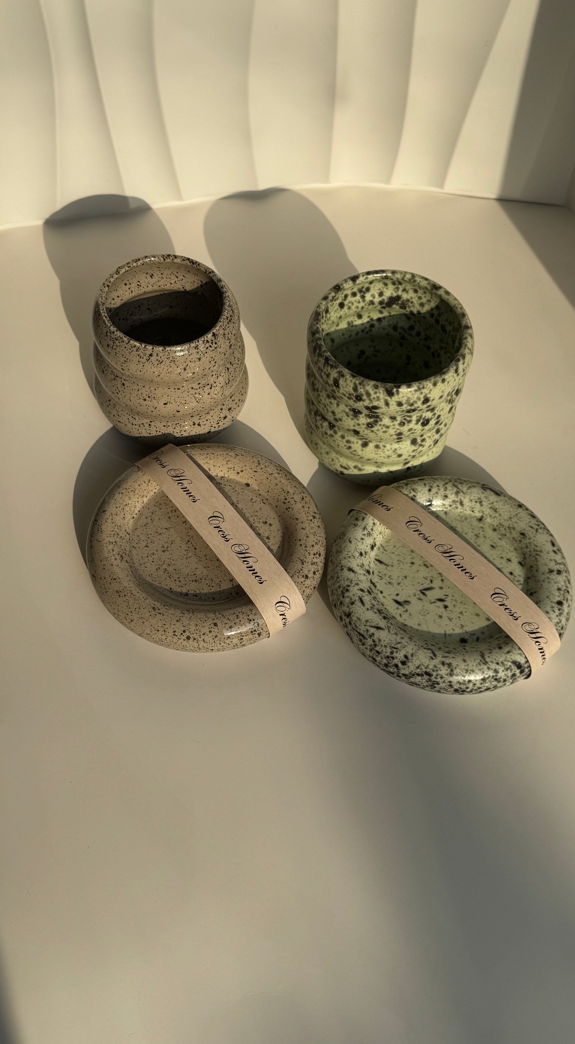 Our ceramic cups blend everyday function with timeless design. The mocha-toned cup holds 330ml, perfect for your morning espresso or afternoon tea. The sage green cup, slightly more generous at 400ml, is ideal for lattes, herbal brews, or cozy cocoa moments.