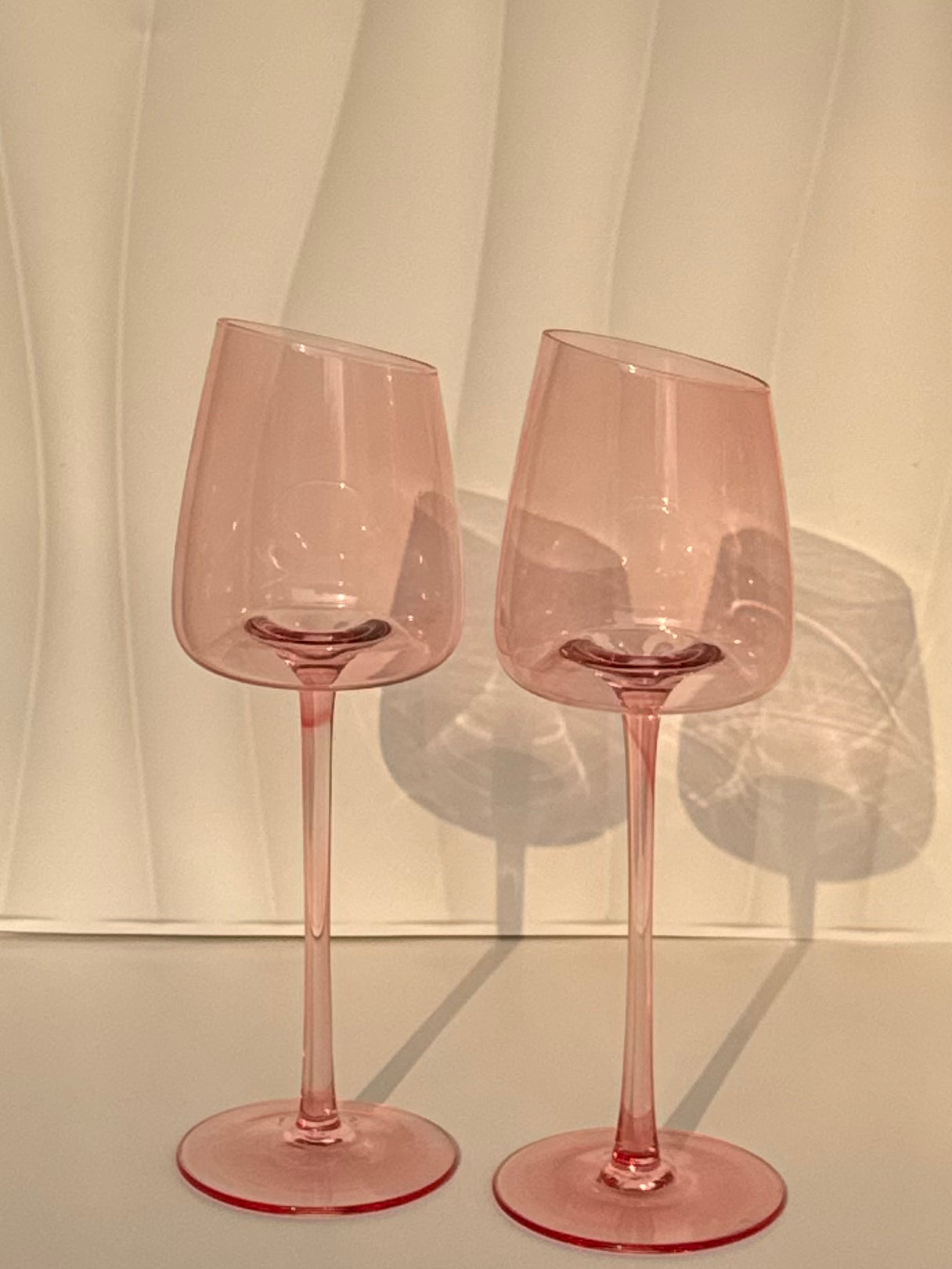 Our Wine Goblets come in a set of two elegant pairs, perfect for sharing special moments. With their soft pink hue and graceful silhouette, they add a touch of romance to any table setting. Whether you're hosting or unwinding, these goblets turn every pour into a celebration.